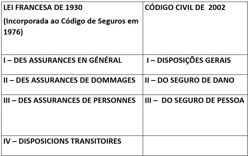 Sua formação francesa é evidenciada de forma um tanto explícita na forma como estruturou o Capítulo do Seguro: