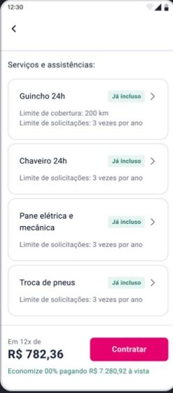 Após o preenchimento de todo o questionário e validação, é possível visualizar as cotações/ofertas disponíveis para o seu veículo;