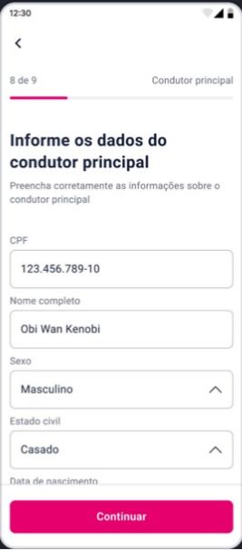 Adicione informações sobre o condutor ou condutores e qual local em que o veículo está localizado;