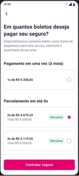 Ao escolher uma oferta, o app/site redireciona para a forma de pagamento;